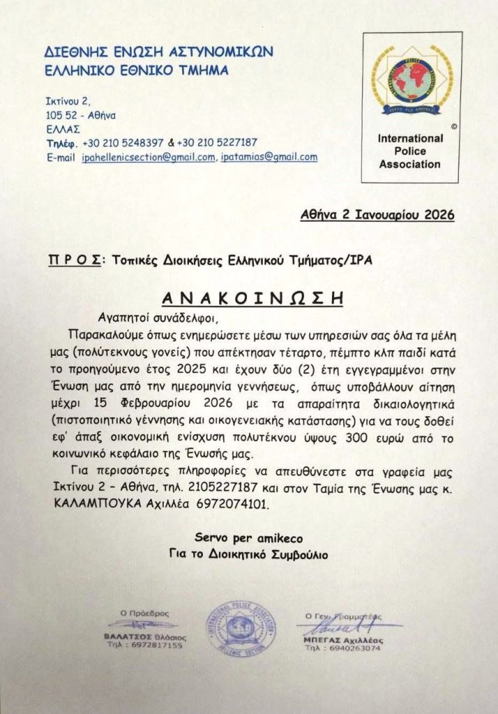 Οικονομική Ενίσχυση Πολυτέκνων Έτους 2025.